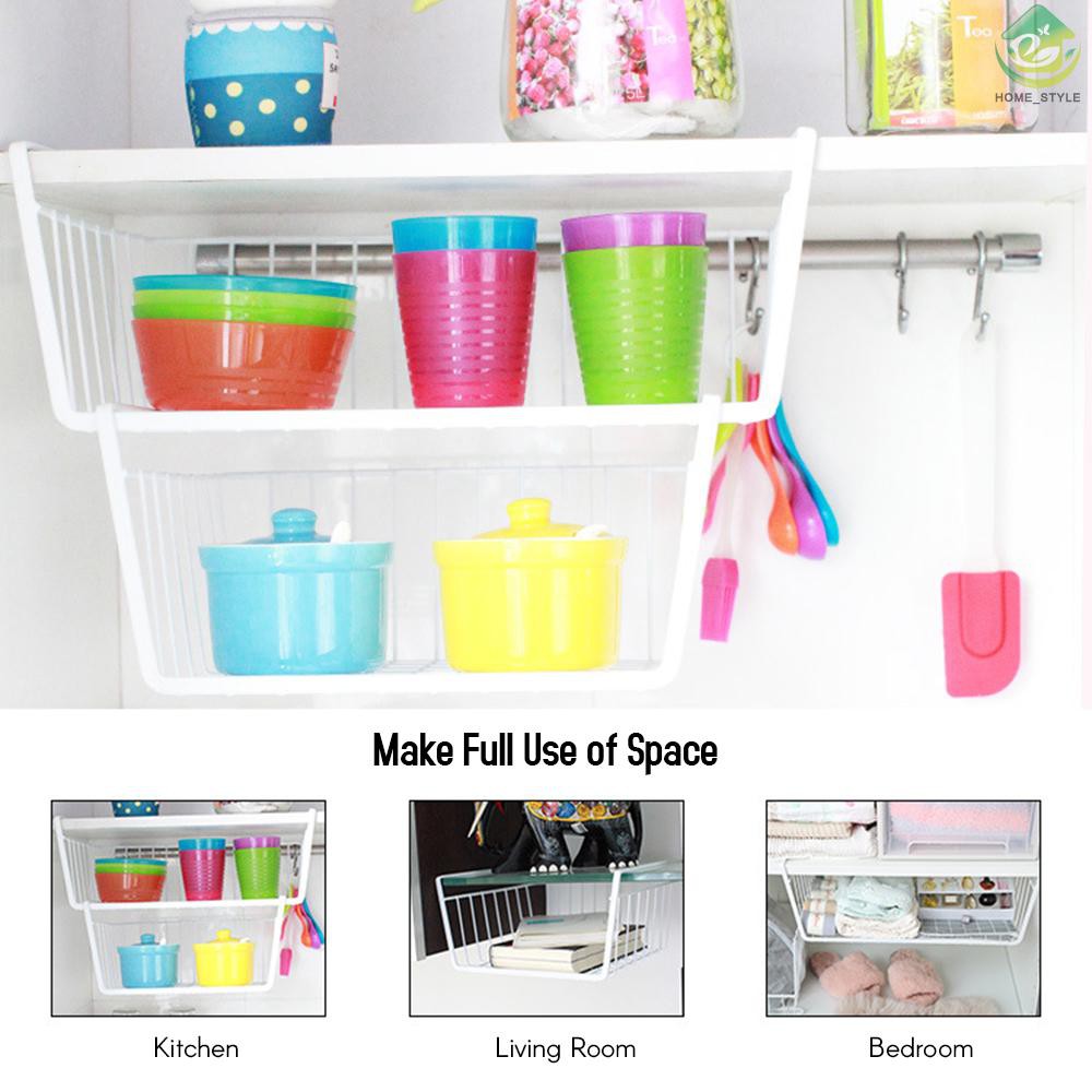 Hanging Basket Under Shelf Hanging Metal Wire Storage Basket For Kitchen Office Pantry Bathroom Cabinet Shopee Indonesia via shopee.co.id